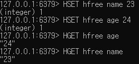 hash는 hset으로 입력 hget으로 출력